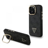Guess 4G Strass Triangle Logo Stand Hülle mit MagSafe für iPhone 15 Pro Max – Braun