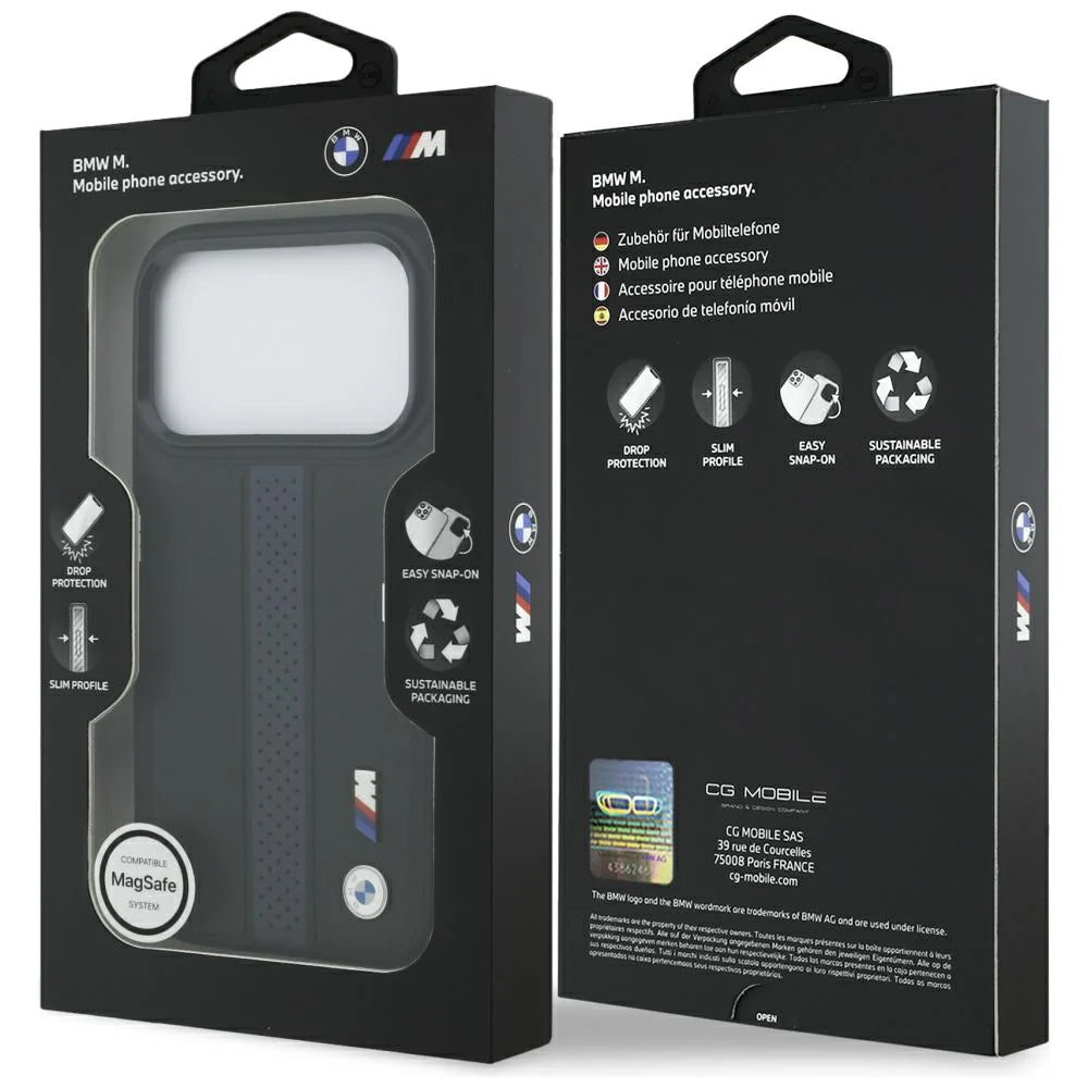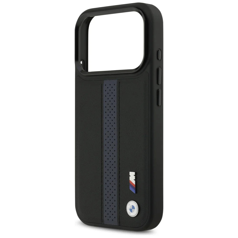 BMW M Collection Stripe Leather Case Schwarz/Blau für iPhone 17 Pro Max