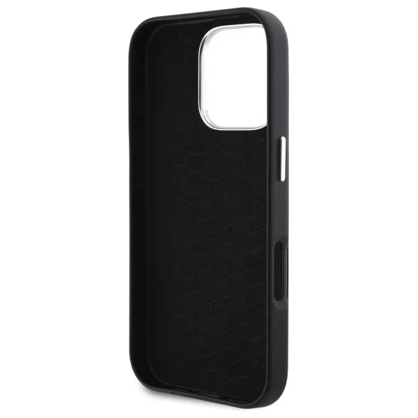 BMW M Hardcase für iPhone 16 Pro – Schwarz mit Metall-Logo und silbernem Kamerarahmen