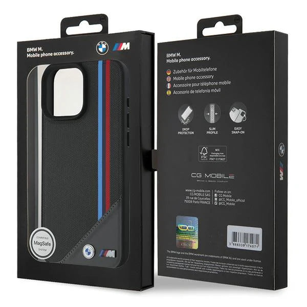 BMW M MagSafe Hülle für iPhone 16 – Textil mit M-Streifen