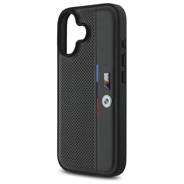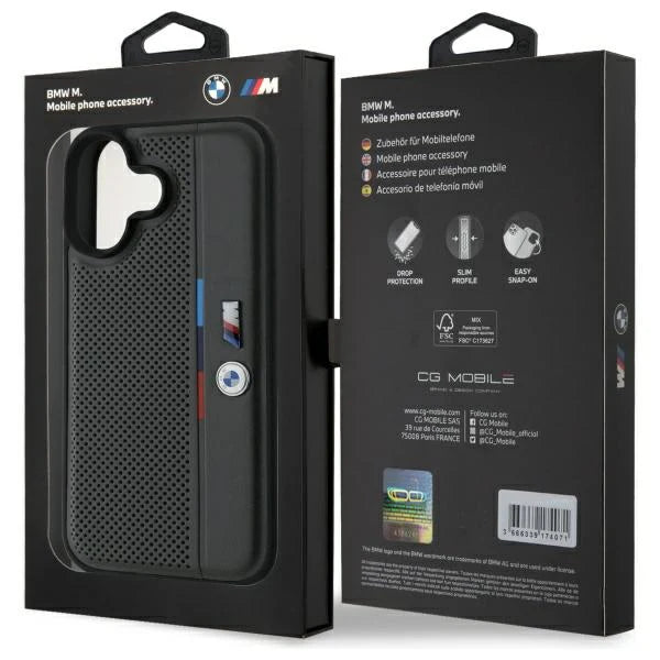 BMW M Motorsport Schutzhülle für iPhone 16 – Schwarz mit Logo & M-Streifen