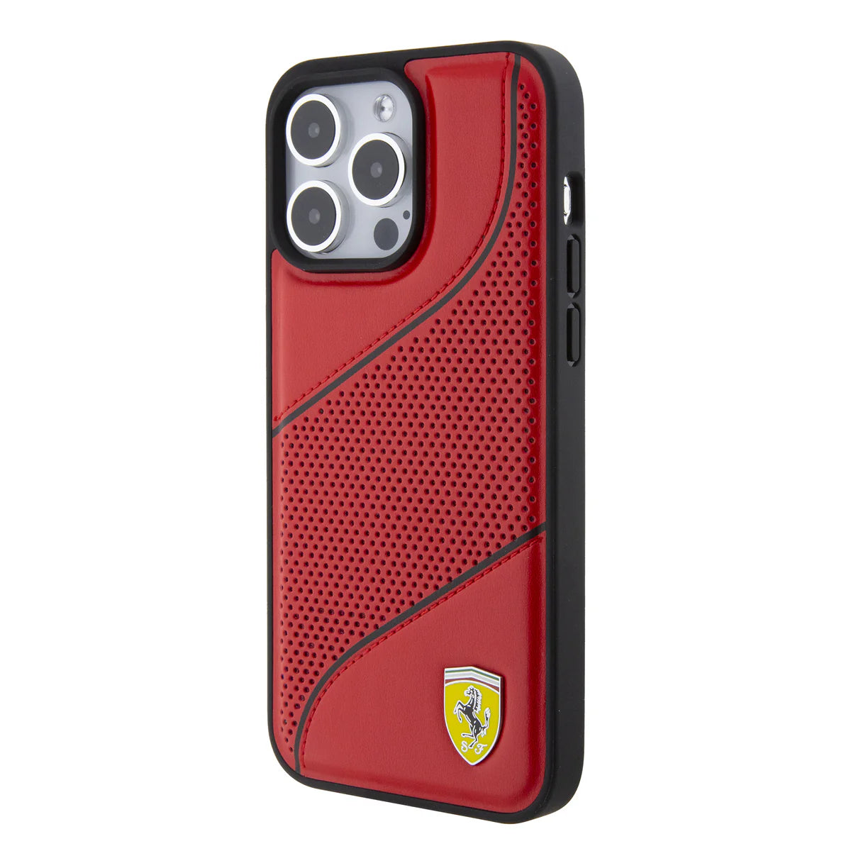 Ferrari Perforated Leather Hardcase für iPhone 15 Pro Max – Rot