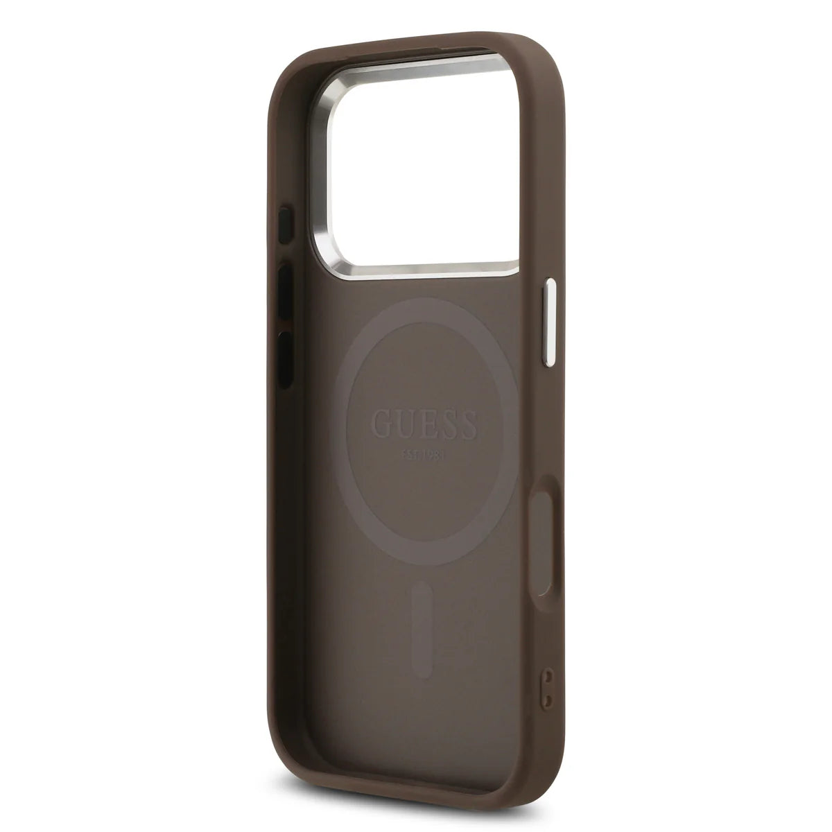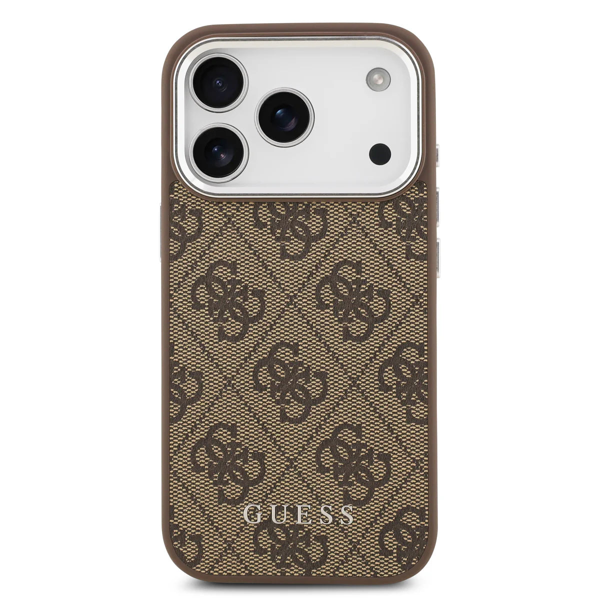 Setze auf zeitlose Eleganz mit der Guess 4G Signature MagSafe Case in edlem Braun – die perfekte Kombination aus Luxus, Funktionalität und Schutz für dein iPhone 17 Pro Max.