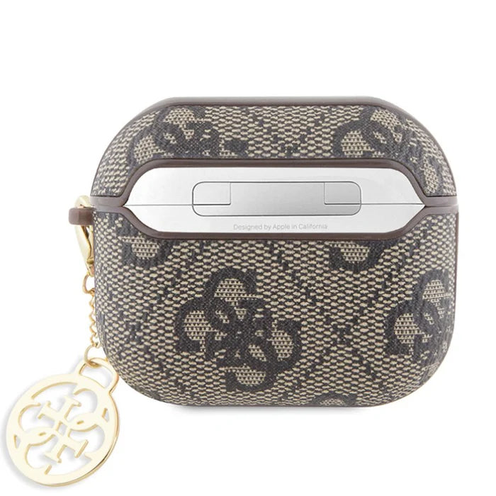 Guess AirPods 3 Hülle – 4G Logo Beige/Braun mit Gold-Anhänger