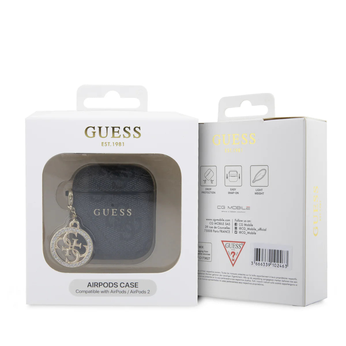 GUESS AirPods Case für AirPods 1 & 2 – Schutzhülle mit Logo & Anhänger
