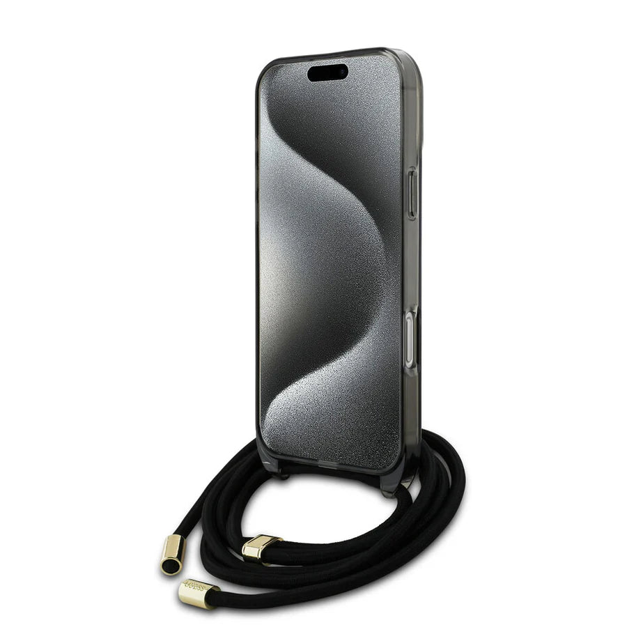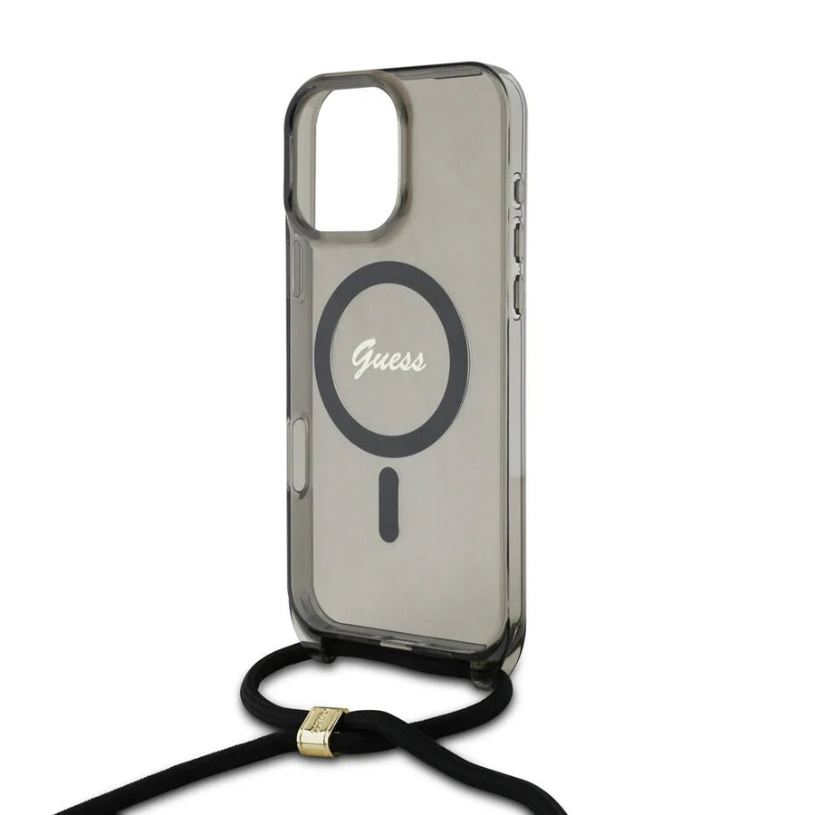 GUESS Crossbody Handyhülle für iPhone 16 Pro Max – Schwarz Transparent mit MagSafe & Trageband