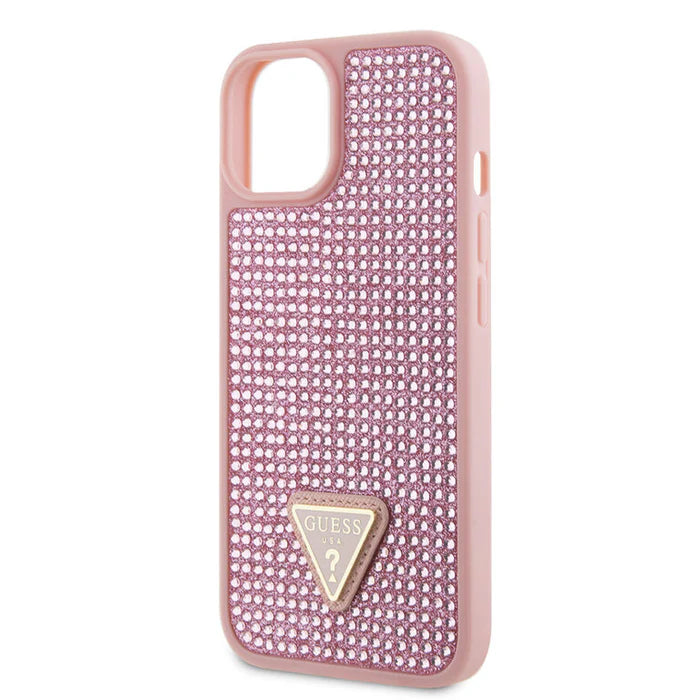 GUESS Glitter Hülle mit Triangle-Logo – für iPhone 16 (Rosa)