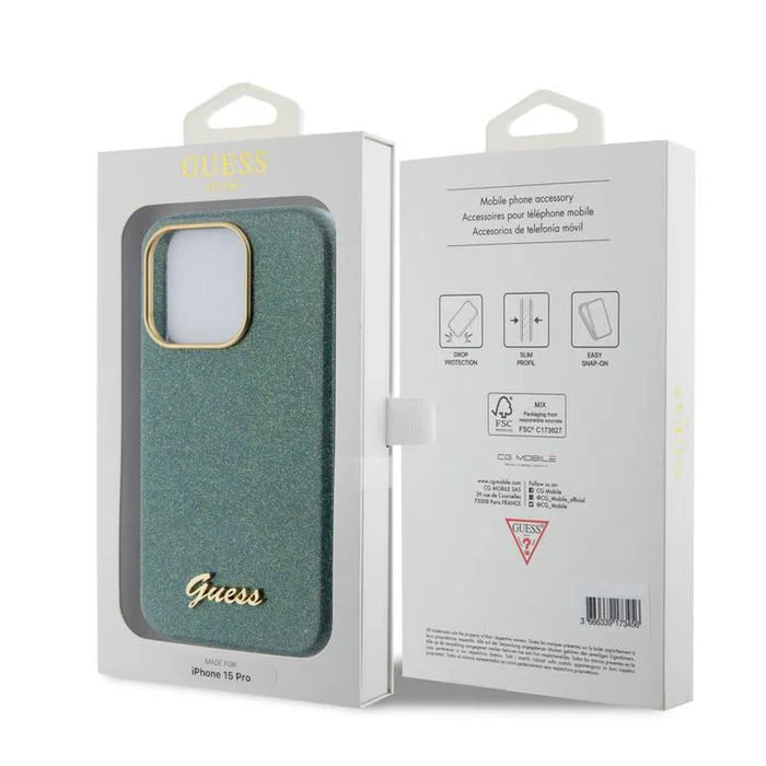 Guess Glitter Script Hülle für iPhone 15 Pro Max – Kaki