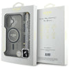 Eleganz in Schwarz: Diese stilvolle GUESS Hülle kombiniert transparentes Schwarz mit feinem Glitzereffekt und einem magnetischen MagSafe-Ring – das Ganze ergänzt durch ein schwarzes Perlenarmband mit goldenen Akzenten. Mode trifft Funktion!