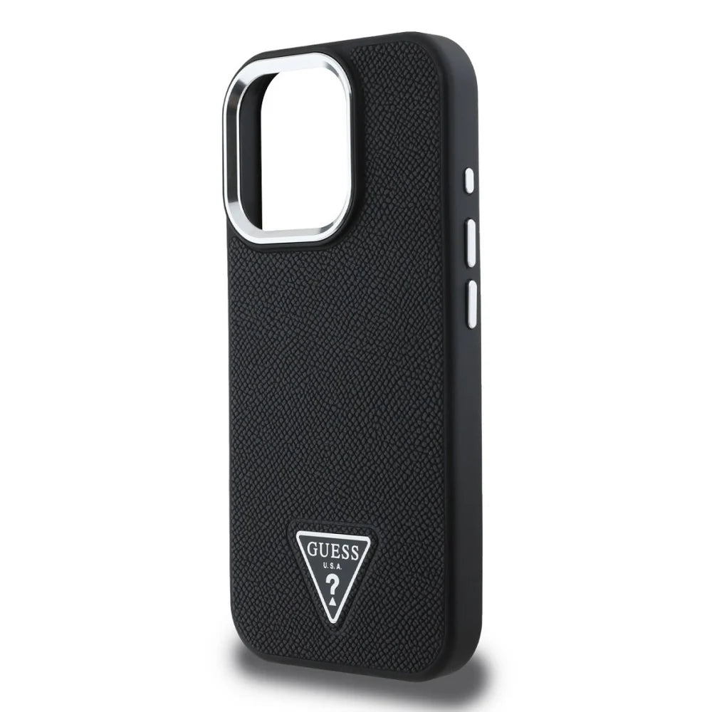 Setze auf schlichte Eleganz mit der Guess Hülle für dein iPhone 16 Pro Max. Die strukturierte Oberfläche im schwarzen Look sorgt für einen sicheren Griff, während das dezente Markenlogo einen stylischen Akzent setzt.