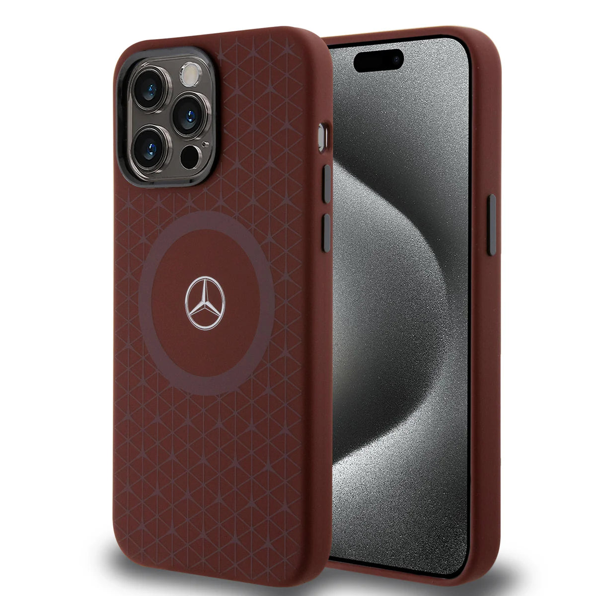 Die Mercedes-Benz Schutzhülle in elegantem Braun verleiht deinem iPhone 15 Pro Max einen stilvollen Premium-Look. Das edle Design mit eingeprägter Struktur und klassischem Mercedes-Logo verbindet Eleganz, Schutz und Funktionalität.