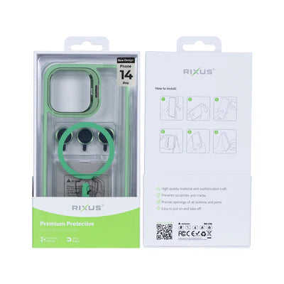 RIXUS Elegante MagSafe‑Clear‑Hülle in Frühlingsgrün mit Kameraschutz für iPhone 14 Pro