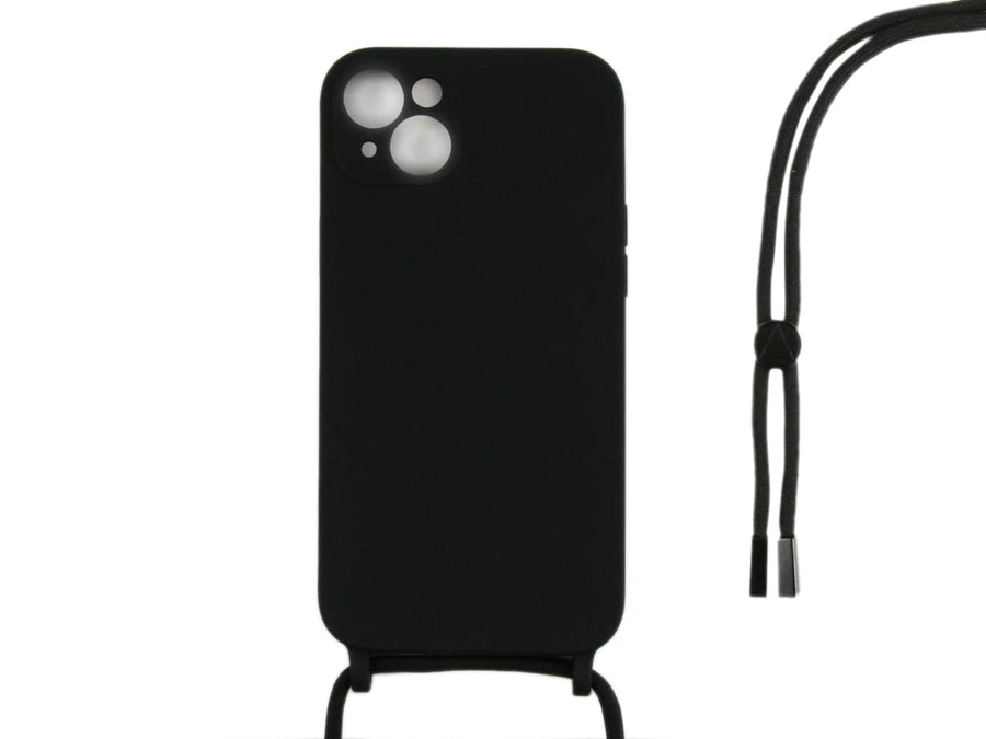 RIXUS iPhone 13 Hülle mit Kordel – Silikonhülle zum Umhängen – Schwarz