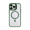 Robustes Case mit grünem Rahmen, MagSafe-Kompatibilität und verstärktem Kameraschutz aus Metall.