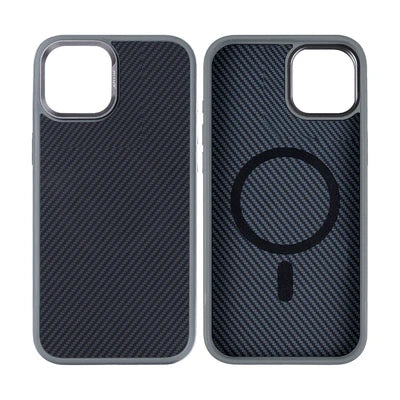 RIXUS MagSafe-Hülle im Carbon-Faser-Look für iPhone 13 – Schwarz mit Grauem Rahmen