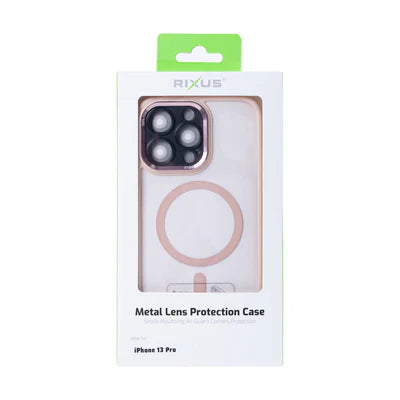 Rixus Metal Lens Protection MagSafe Case für iPhone 13 Pro – Transparent/Roségold
