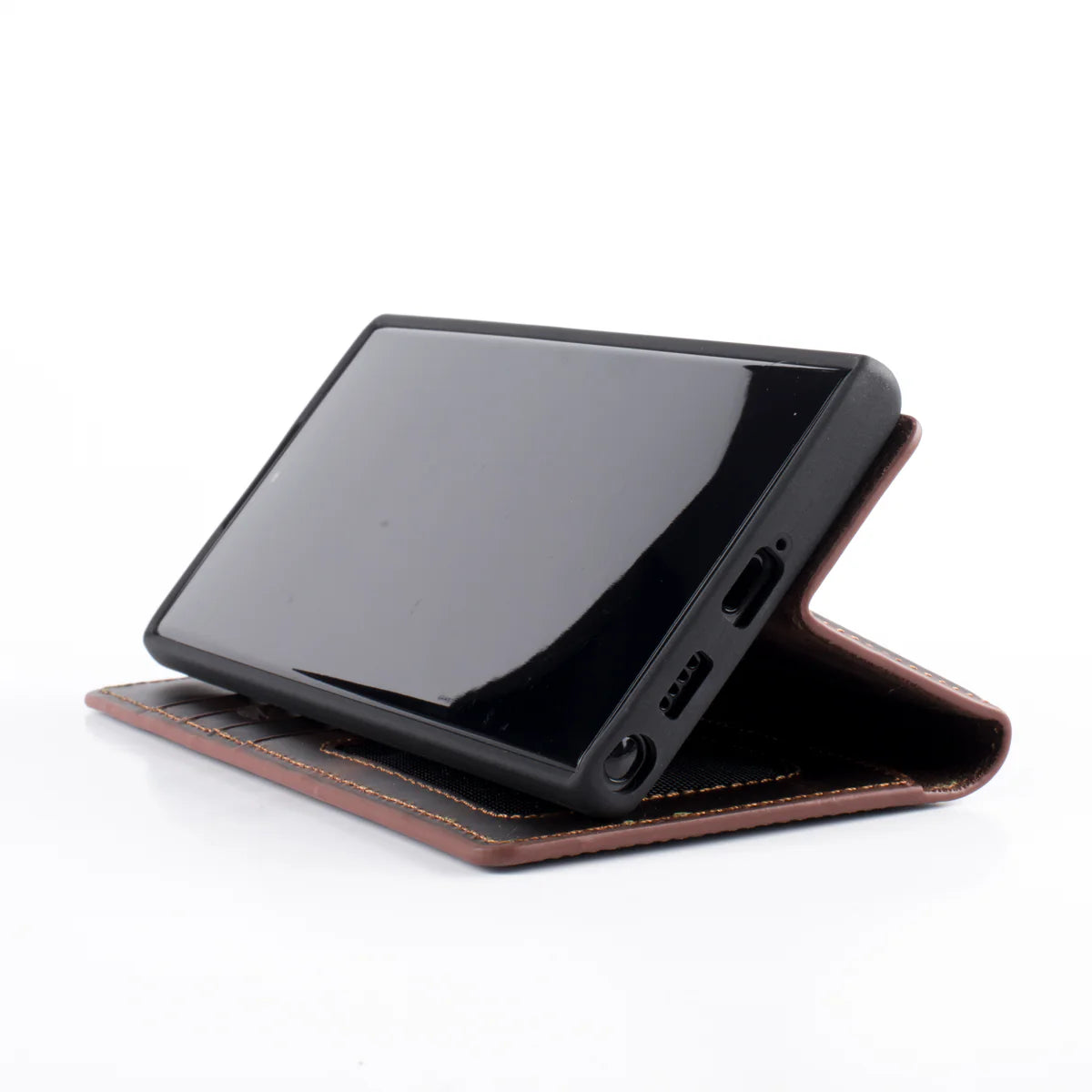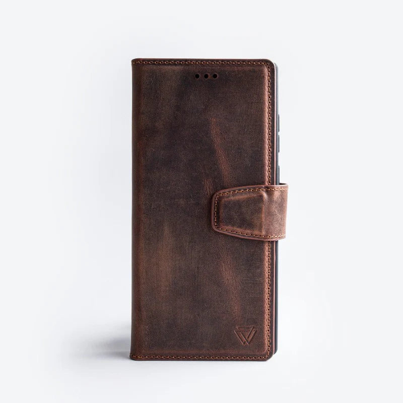 Wachikopa Echtleder Wallet Case für Samsung Galaxy S25+ – Handgefertigt, Braun